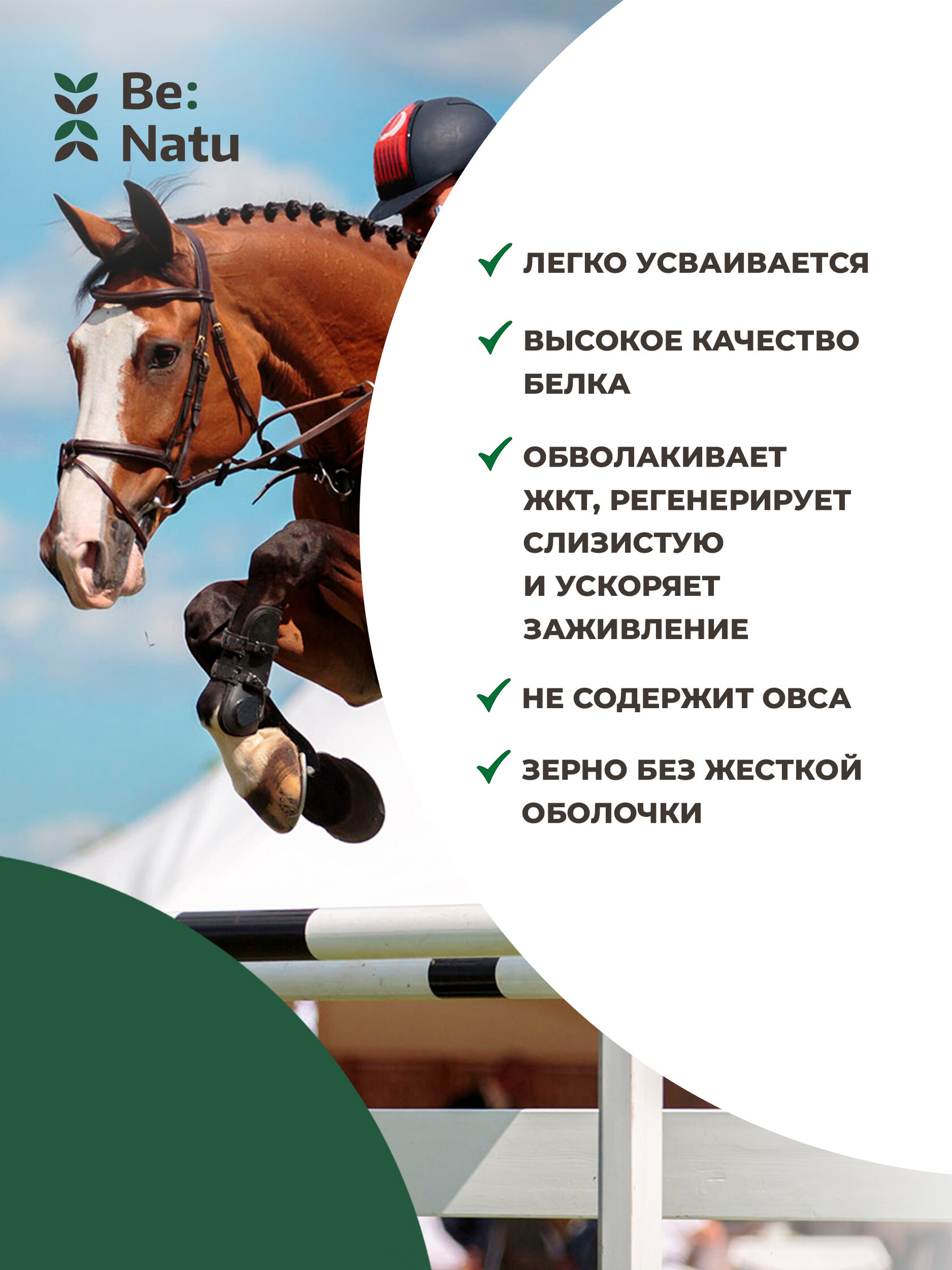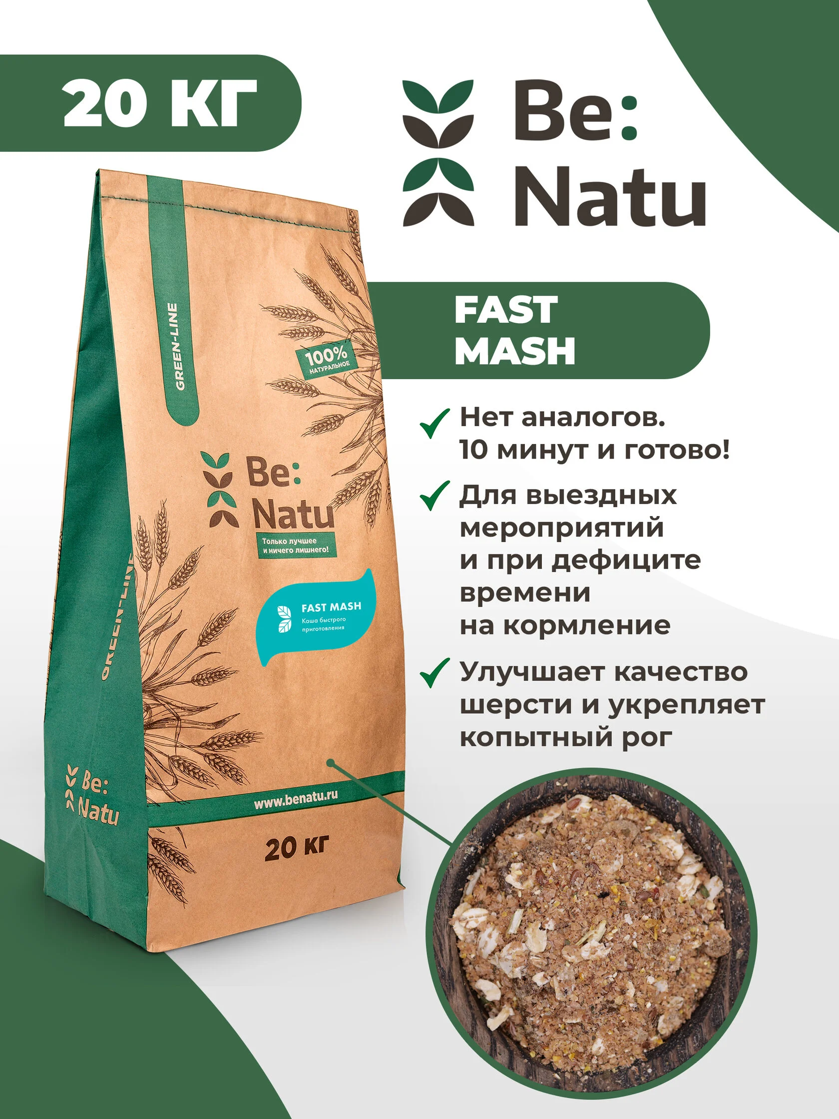 Каша быстрого приготовления. Всего 10 минут — и готово! Содержит сбалансированный набор компонентов, обработанных особым способом для наилучшего усвоения и защиты ЖКТ лошади.