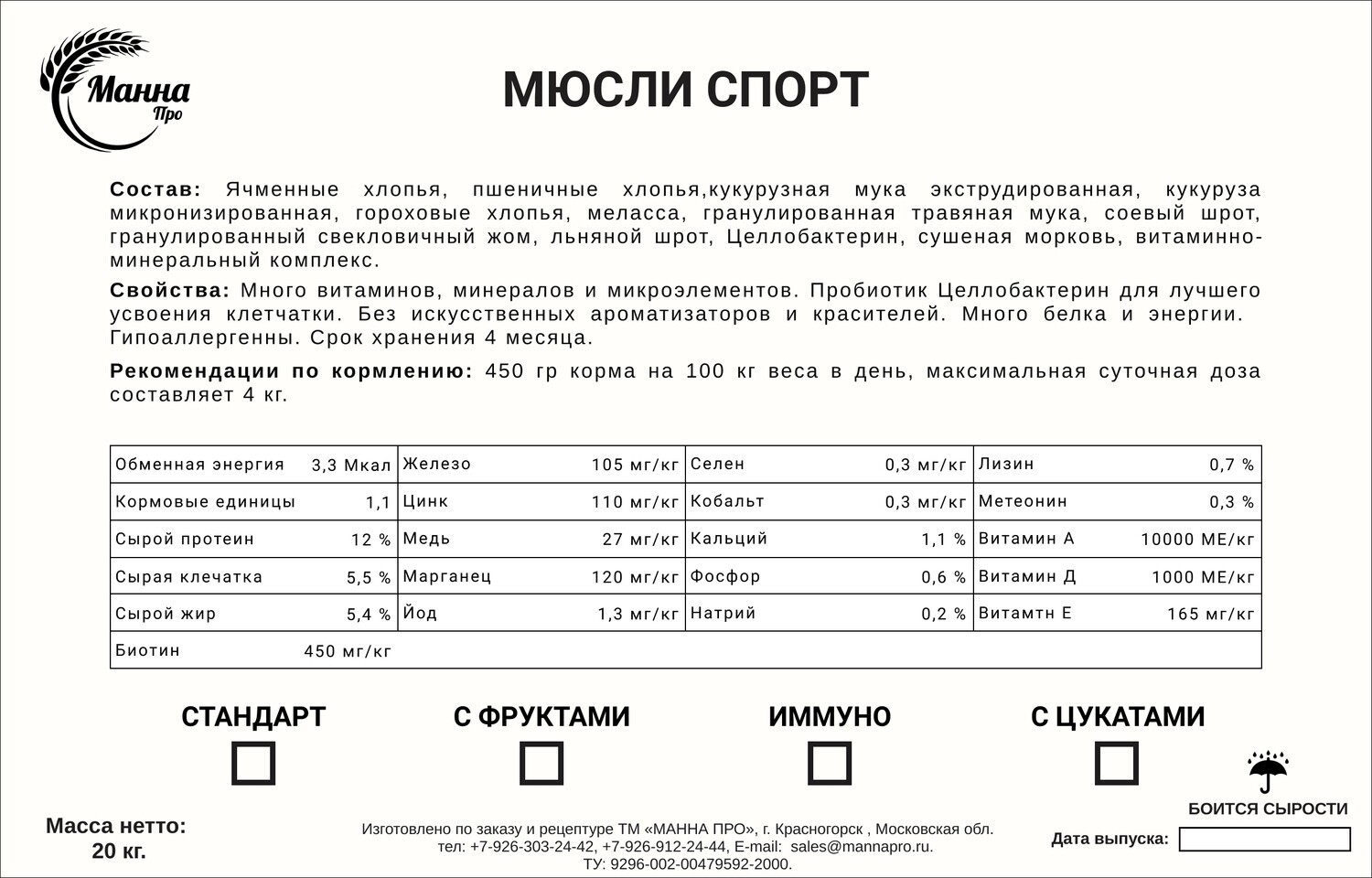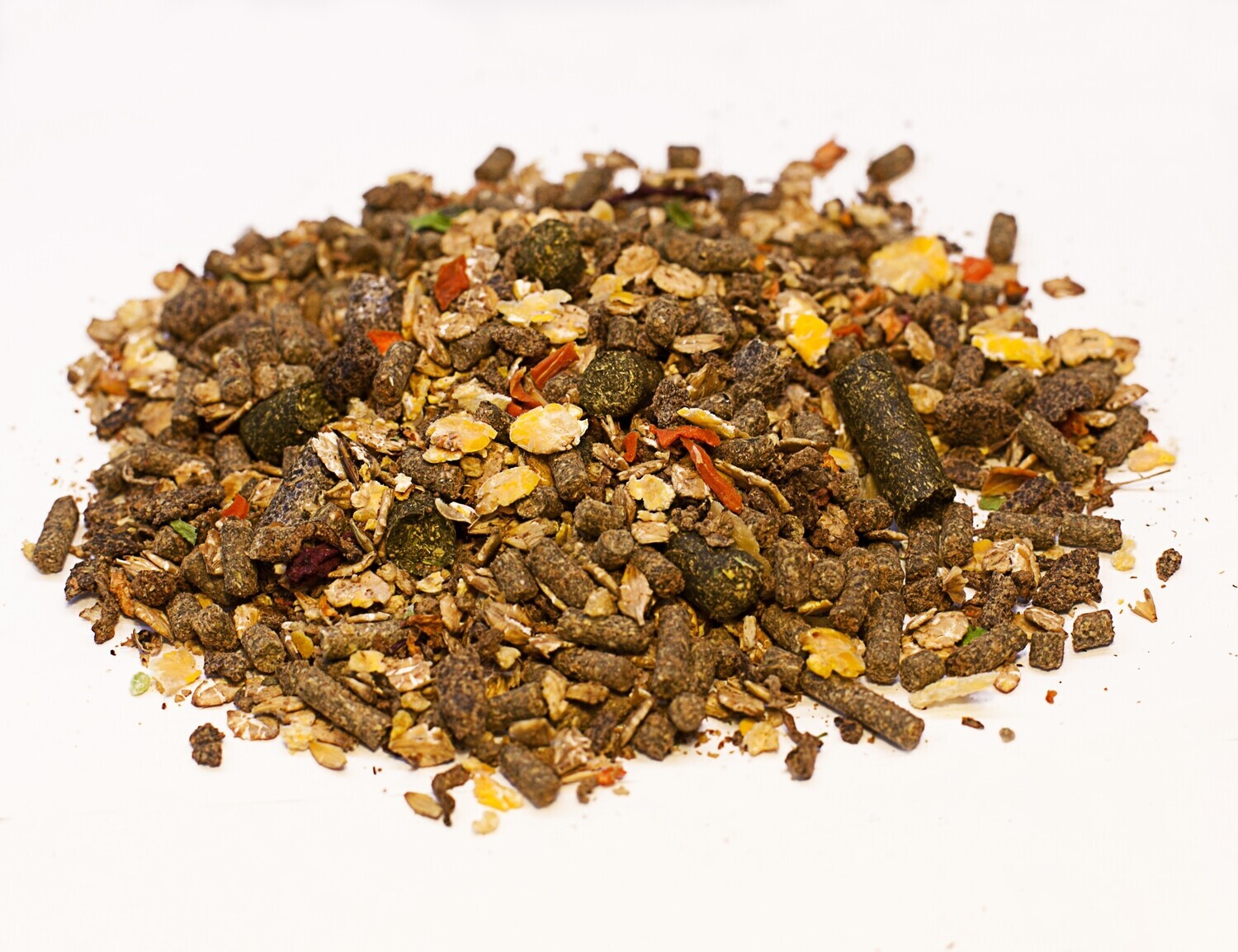 Состав: Ячменные хлопья, пшеничные хлопья,кукурузная мука экструдированная, кукуруза микронизированная, гороховые хлопья, меласса, гранулированная травяная мука, соевый шрот, гранулированный свекловичный жом, льняной шрот, Целлобактерин, сушеная морковь, витаминно-минеральный комплекс.