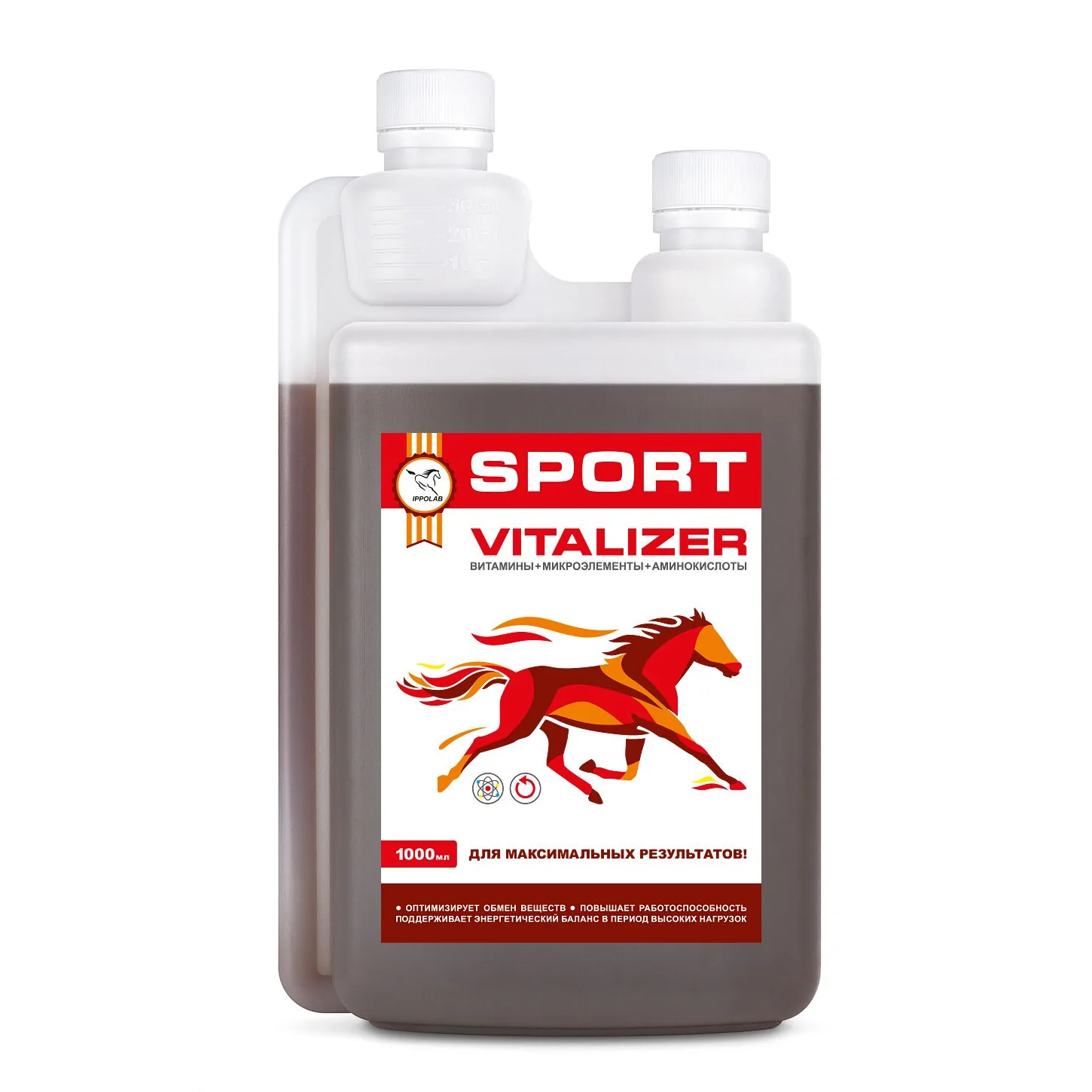 Благодаря высокому содержанию витаминов, микроэлементов и аминокислот в составе Vitalizer, оптимизируется обмен веществ, организм получает дополнительный заряд энергии, что помогает лошади лучше справляться с предельными нагрузками и работать с максимальной отдачей на протяжении более длительного времени.